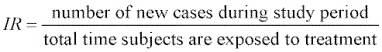 A case is considered new if the subject first developed symptoms after the start of the trial. Adverse events occurring after a subject has recovered from a prior occurrence are considered new cases. Exposure time is normally considered to be either total study time or on treatment depending on the selected option, unless a subject discontinues or an offset is specified or a specific at risk time or event flag is specified.