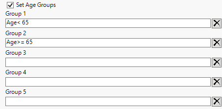 This feature is available only when the Set Age Groups check box has been checked. You must specify at least one age group (Group 1) when the Set Age Groups box has been checked.