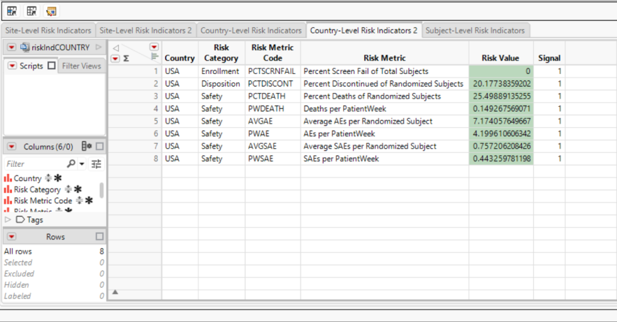 Note: You should refer to How does JMP Clinical define various terms for risk-based monitoring? for information about how terms used in risk-based monitoring are defined.
