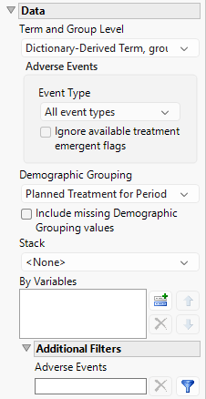 Note: For information about how treatment emergent adverse events (TEAEs) are defined in JMP Clinical, please refer to How does JMP Clinical determine whether an Event Is a Treatment Emergent Adverse Event?.