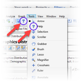 This changes the cursor from an arrow to a question mark. Hover the cursor over a section of the review and click to open up the relevant JMP Help.