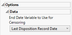 Use the End Date Variable to Use for Censoring option for specifying the end date for censoring. Options include the reference end date (selected by default), date of the last treatment, or the date of the last disposition record.