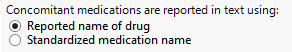 Use this parameter to specify the appropriate concomitant medication terms to be used in narrative text.