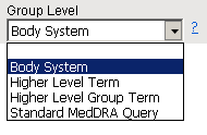 | 8 | Select the group level corresponding to the adverse event or intervention terms that you want to use from the drop-down menu. |
