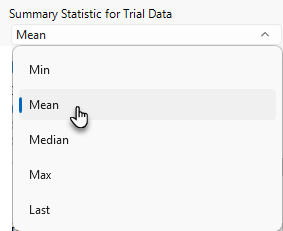 Use the radio buttons to select the statistic used to summarize the data from the trial period.