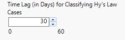 Use the field or slider to specify a lag time for classifying a subject as a Hy's Law case.