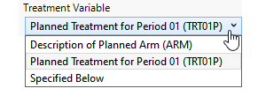Use this widget to specify, from DM or ADSL, the treatment variable to use for all analyses of the study.