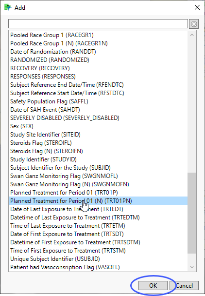 In this example, TRT01PN was selected and added.