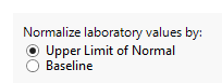 Upper Limit of Normal (default) performs the standard Hy's Law screening by dividing laboratory values by the ULN (LBSTNRHI variable values). |