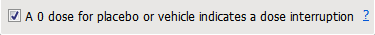 Check this box if a dose of 0 for either the placebo or the vehicle indicates a dose interruption.