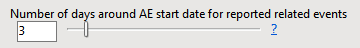 Specify the number of days (+/-) around the AE Start Date for reporting other events in the narrative.