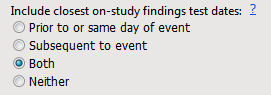 Use this option to include closest findings test dates prior to or subsequent to the onset of the adverse event.
