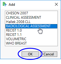 In this example, RADIOLOGICAL ASSESSMENT was selected and added.