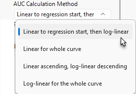 Use this drop down widget to specify the method used to calculate the area under the curve (AUC).