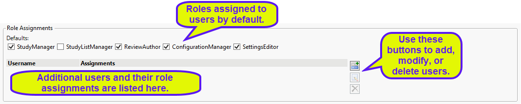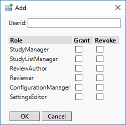 | • | Study List Manager - A user with this role can do everything that a Study Manager can do. In addition, a Study List Manager can manage and delete studies from shared folders. By default, this role is not assigned. The code specification for this role is "StudyListManager". |