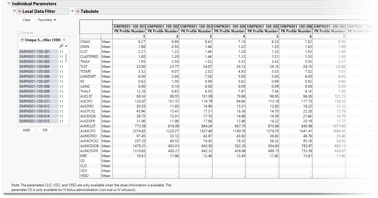 The JMP Fit Curve platform provides one- and two-compartment models for PK analysis and a Non-compartmental analysis (NCA) using data available from the CDISC pharmacokinetics concentrations (PC) domain. Further, this report produces PK profiles that enable the user to view the data of each individual patient in the context of summary statistics derived across groups of patients