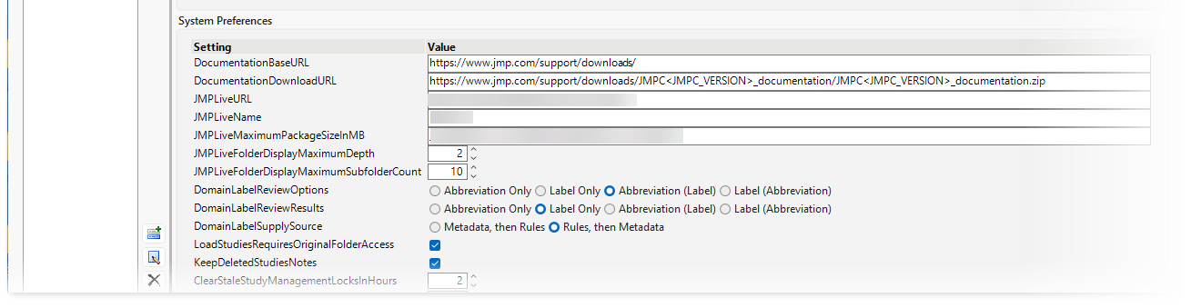 | 8 | Add your assigned JMP Live URL and JMP Live Name to the appropriate rows in the System Preferences box on the Manage Configurations window. |