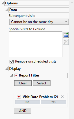 Unscheduled visits can occur for a variety of reasons and can complicate analyses. By default, these are excluded from this analysis. However, by unchecking the Remove unscheduled visits box, you have the option of including them.