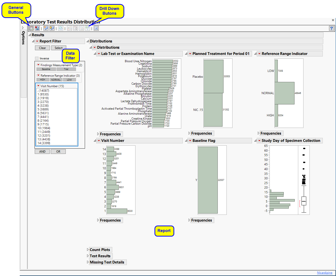 Running Findings Distribution for Nicardipine using default settings generates the Report shown below.