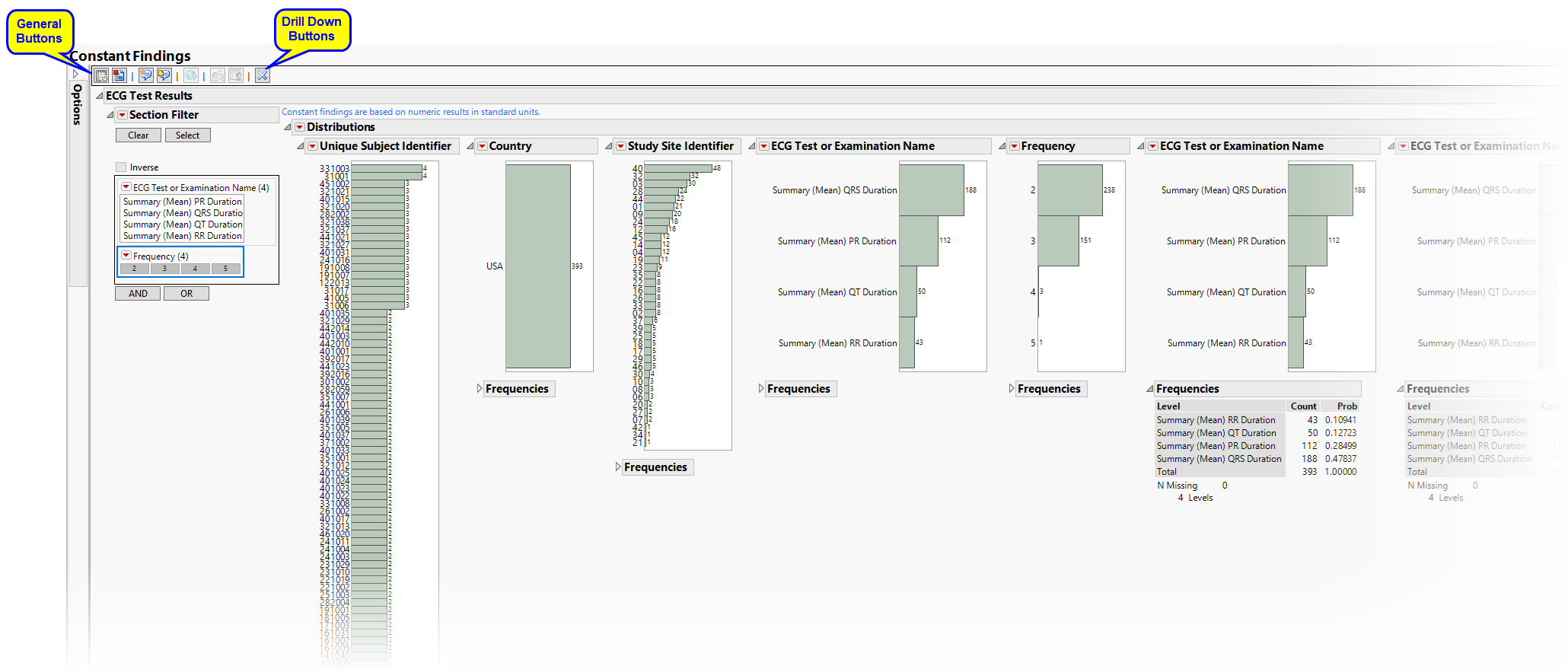 general button to show the records for selected subjects. This details the tests that are constant, as well as the value and the number of times each value is repeated.