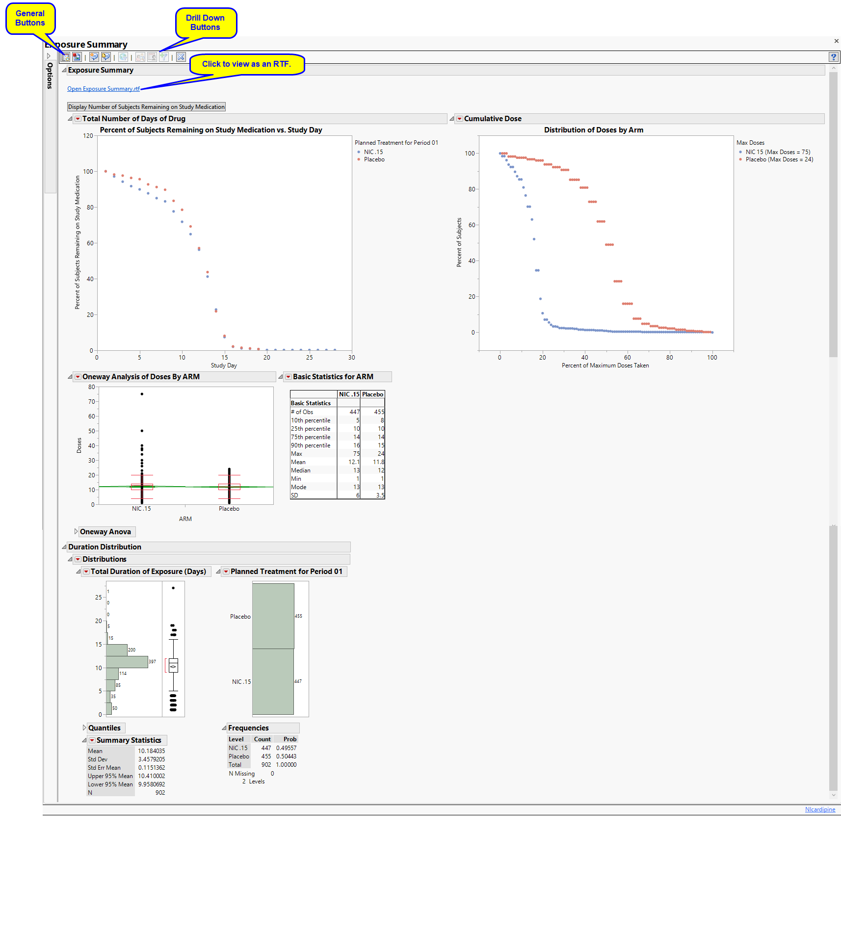 Running Exposure Summary for Nicardipine using default settings generates the Report shown below.