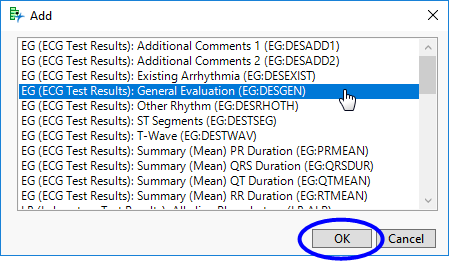 | 8 | Click to open the Add window (shown below) that lists each variable contained in EG, LB, and VS and respective SUPPxx data sets (if merged). |