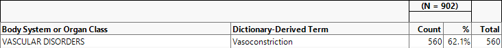 560/902 =.621 62.1% of subjects experienced (treatment emergent) vasoconstriction