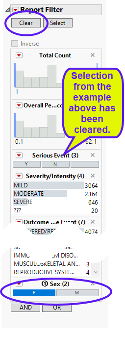 Note: You must click (circled above) to clear out prior filters before making a new selection.