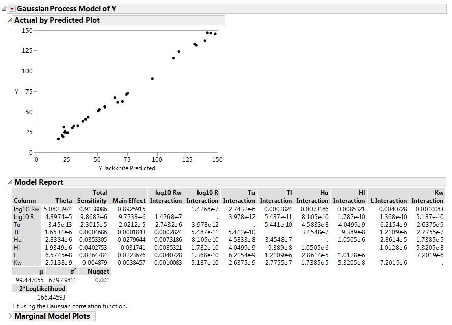 Note: Your estimates can differ from those shown in Borehole Latin Hypercube Report, which were found using the Fast GASP algorithm.