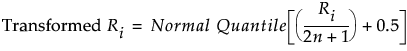 The ANOM procedure is applied to the values Transformed Ri. Since the ranks have a uniform distribution, the transformed ranks have a folded normal distribution. For details, see Nelson et al. (2005).