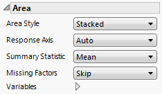 Changes how the area is displayed when there are merged variables on the response axis. For area style descriptions, see Area Styles and Descriptions.