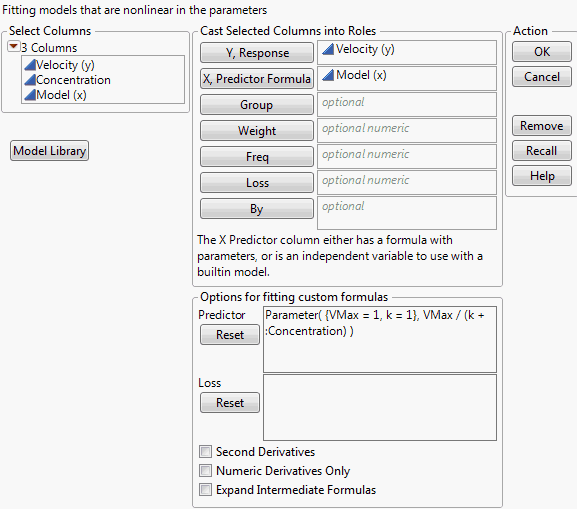 Notice that the formula given by Model (x) appears in the Options for fitting custom formulas panel.