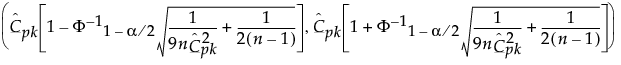 The 100(1 - α)% confidence interval for Cpk is calculated as follows: