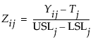 When a spec limit is missing for a column, the box plot is colored. If only the upper spec limit (USL) is specified, the box plot is colored blue. If only the lower spec limit (LSL) is specified, the box plot is colored red. See Missing Spec Limits. A note at the bottom of the plot describes the calculations used for the plot.