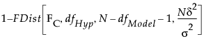 Here, dfHyp represents the degrees of freedom for the hypothesis, dfModel represents the degrees of freedom for the model, and N is the proposed (or actual) sample size.