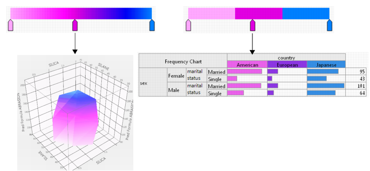 Custom Color Theme Panel shows the color theme panels for both continuous and categorical themes (respectively).