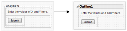 After inserting some containers, you can change them to a different type of container without having to re-create the object. Suppose that you create a panel that contains text and a button. To see what the panel looks like as an outline, select the panel, right-click in the module, and then select Change Container > Outline (Change a Panel to an Outline).