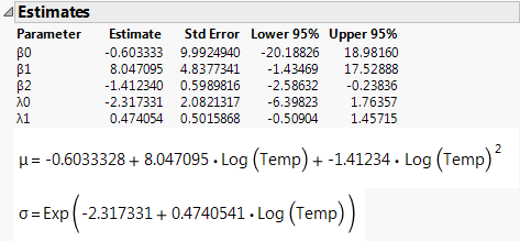 In the entry field for μ, enter 1, log(:Temp), log(:Temp)^2.