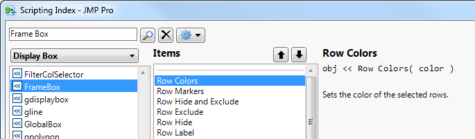 To find out which messages you can send to a frame box, select Help > Scripting Index and search the Display Box list for “frame box” (Scripting Index Display Box List).