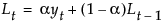 The smoothing equation, Lt = αyt + (1 – α)Lt-1, is defined in terms of a single smoothing weight α. This model is equivalent to an ARIMA(0, 1, 1) model where the following is true: