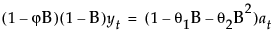 This model is equivalent to an ARIMA(0, 1, 1)(0, 1, 1)1 model where the following is true: