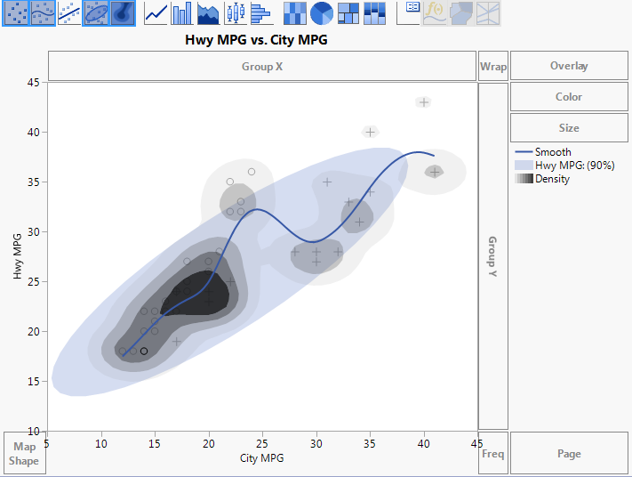 As a general rule, when you hide rows but do not exclude them, elements in the plot that are in one-to-one correspondence with the hidden rows are then hidden in the plot. When elements in the plot are not in one-to-one correspondence with rows that are hidden but not excluded, the effect on the plot depends on the element type. For details, see the specific element’s section.