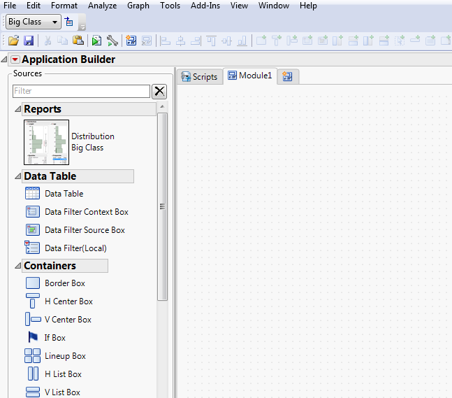 The Distribution report appears in a new window (Example of an Instant Application). Note that the histograms are interactive and still associated with the data table. When the data changes, you run the application again, and the Distribution report is updated.