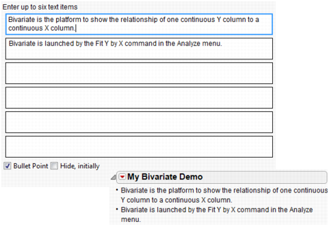 Click the red triangle in the My Bivariate Demo title bar and select Add Window Reference.