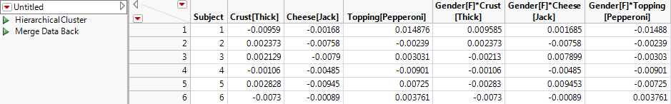 A new column called Cluster is added to the data table containing the gradients. Each subject has been assigned a Cluster value that is associated with other subjects having similar gradient forces. See Hierarchical Cluster in the Multivariate Methods book for a discussion of other Hierarchical Clustering options.