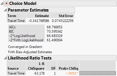 Now that you have separated the original Daganzo Trip.jmp table into two separate tables, you can run the Choice Platform.