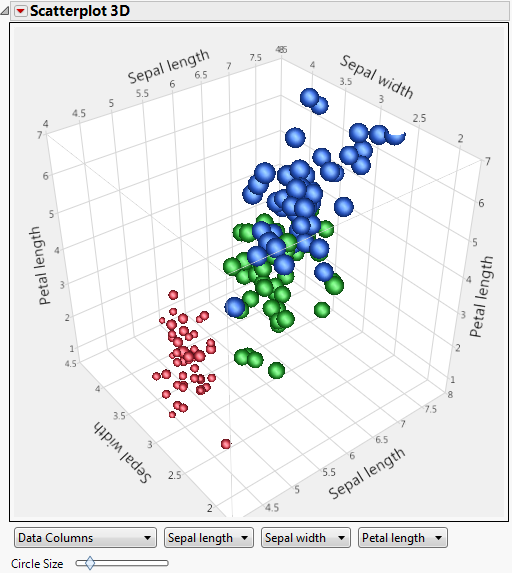 This example uses the Iris.jmp sample data table, which includes measurements of sepal length, sepal width, petal length, and petal width for three species of iris.