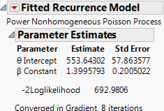 Select Fit Model from the platform red-triangle menu to produce the Recurrence Model Specification window shown in Recurrence Model Specification.