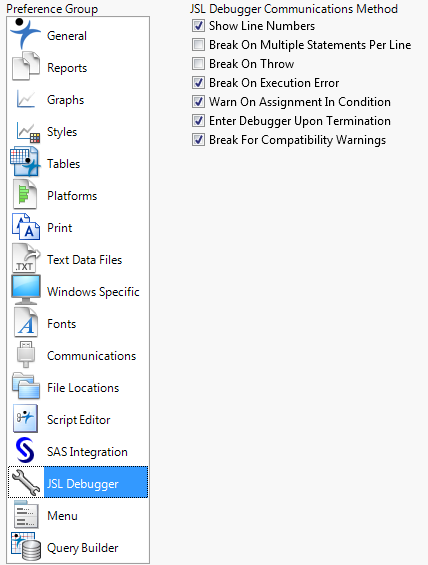Breaks when an exception error occurs in a Try() function. For example, the exception error in the Try() function is thrown by a Throw() function. The Debugger breaks on theThrow() instead of continuing through the rest of the codes. This lets you identify where the problem occurred in the script and then return to debugging. The default value is deselected.