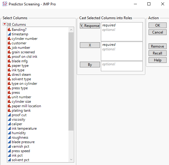 Analyze > Screening > Predictor Screening